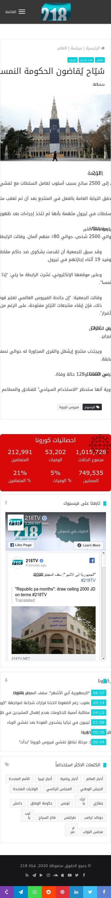| Title | الصحة العالمية تحسم جدل "الكمامة وكورونا" | قناة 218 | تفاصيل أول إصابة كورونا في ليبيا.. القصة من أولها | قناة 218 | مخاوف من أزمة غذاء في ليبيا بعد إغلاق الحدود | قناة 218 |
