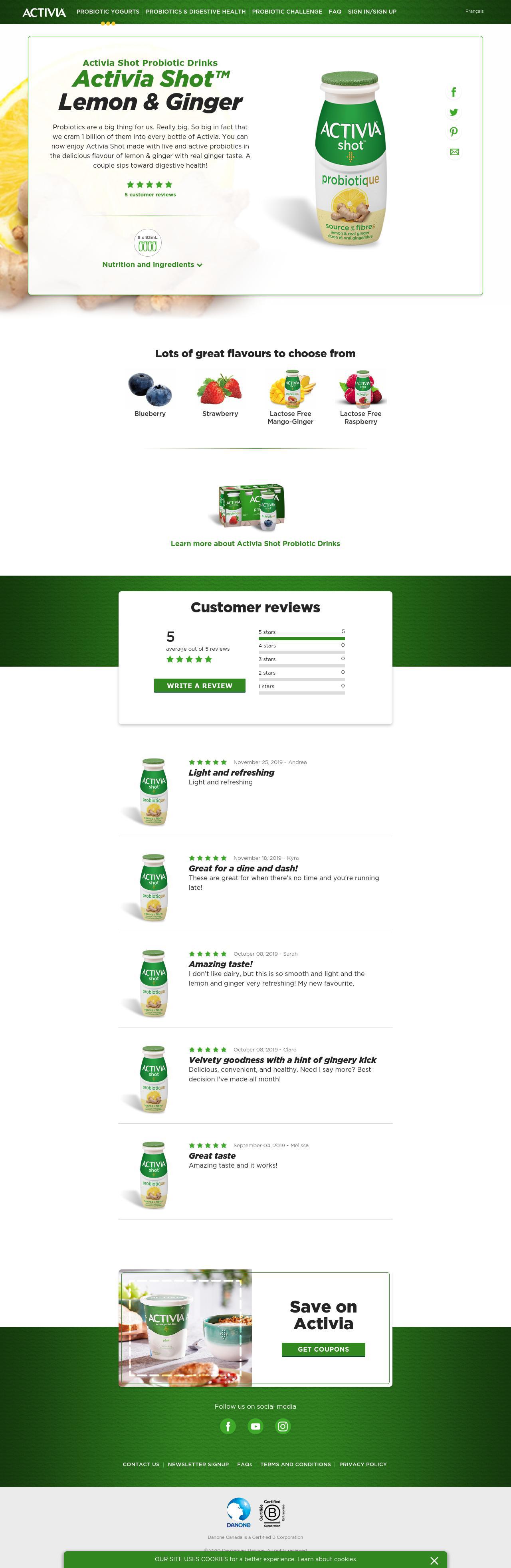 In addition to the above ad landing pages, activia.ca recently launched related landing pages with a total number of 4. The main advertising platforms of these related ad landing pages are Facebook、Facebook etc. These ad landing pages include some AB-tested pages. After the final verification, activia.ca has placed a lot of ads by using the most effective ad landing pages.