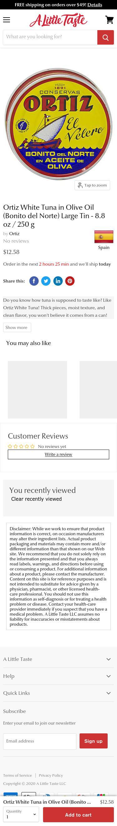 Title:Ortiz White Tuna in Olive Oil Large Tin - 8.8 oz | A Little Taste