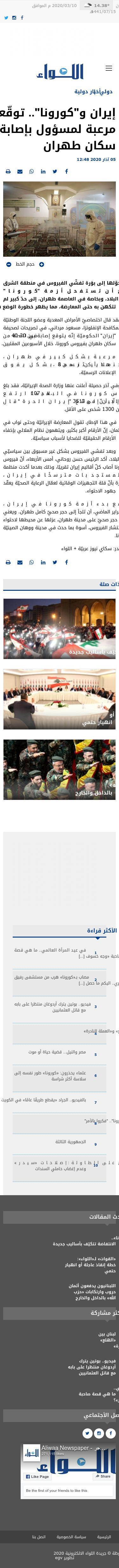 Title:http://www.egv.com.lb إيران و"كورونا".. توقّعات مرعبة لمسؤول بإصابة ثلث سكان طهران | أخبار دولية | جريدة اللواء