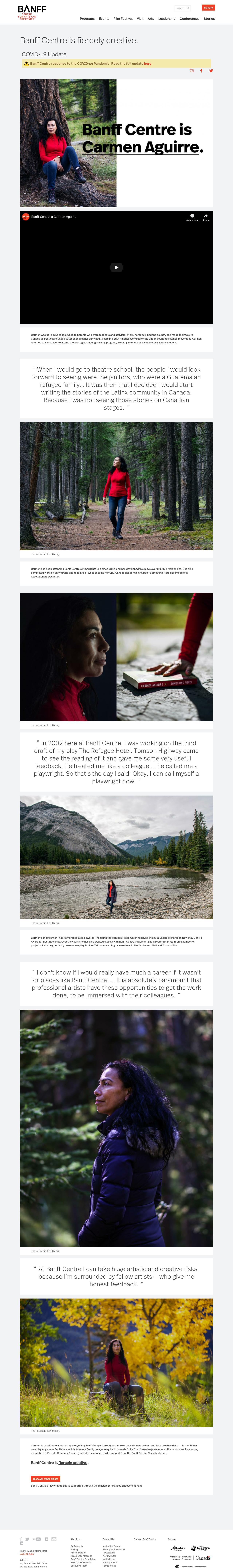 Description:Carmen was born in Santiago, Chile. She has been attending Banff Centre’s Playwrights Lab since 2002, and has developed five plays over multiple residencies.