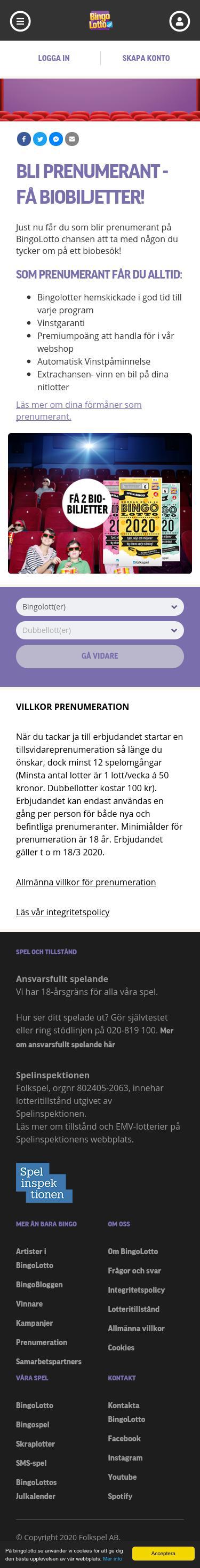 Title:Bli prenumerant - få biobiljetter | BingoLotto