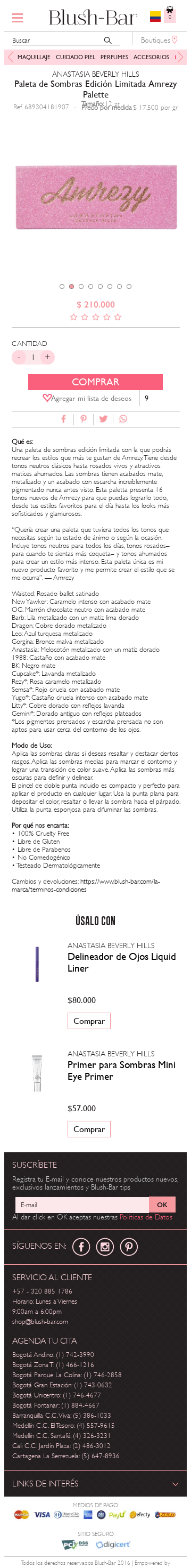 Description:Compra en Blush-Bar Paleta de Sombras Edición Limitada Amrezy de Anastasia Beverly Hills ¡Conoce nuestra tienda Online!