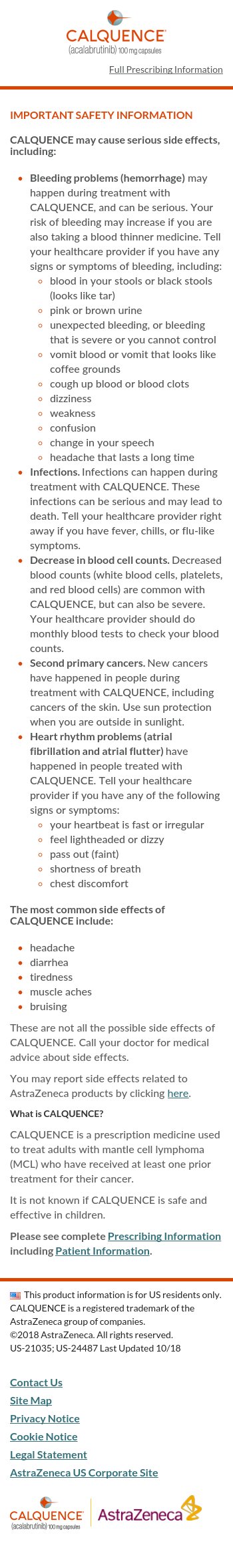 Title:Important Safety Information | CALQUENCE® (acalabrutinib) for Physicians