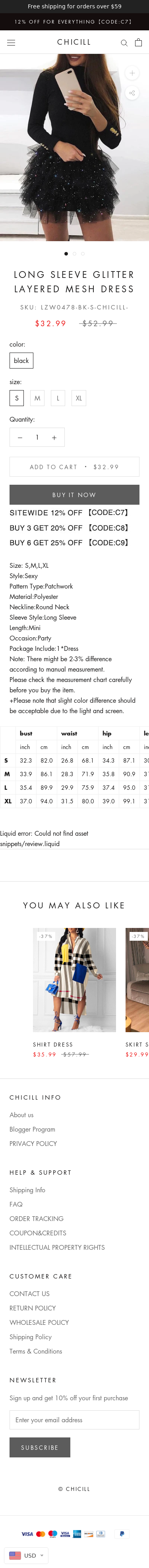 Title: Long Sleeve Glitter Layered Mesh Dress – Chicill