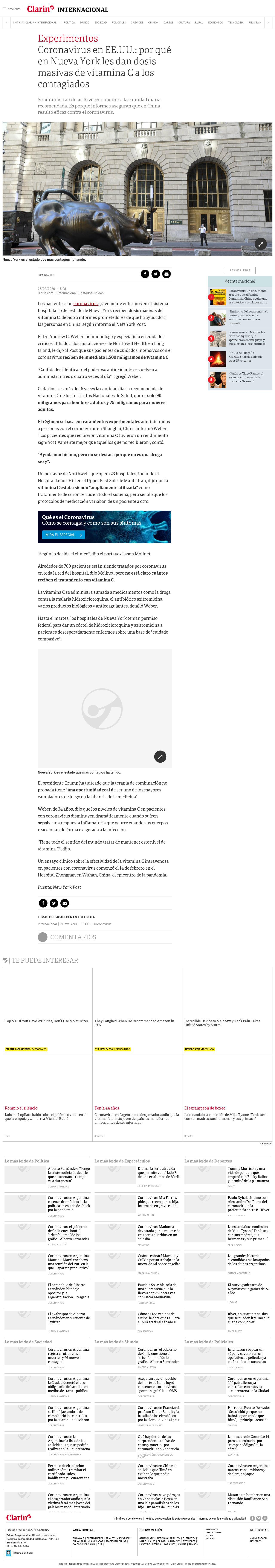 Title:Clarín.comCoronavirus en EE.UU.: por qué en Nueva York les dan dosis masivas de vitamina C a los contagiados - Clarín