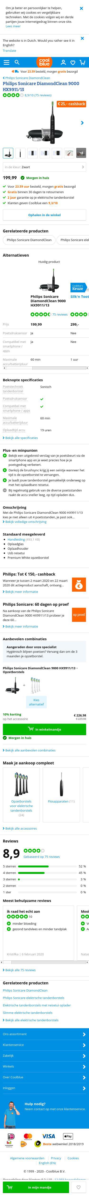Description:Bestel de Sonicare DiamondClean 9000 HX9911/13 bij Coolblue. Voor 23.59u? Morgen gratis bezorgd. Coolblue: alles voor een glimlach.