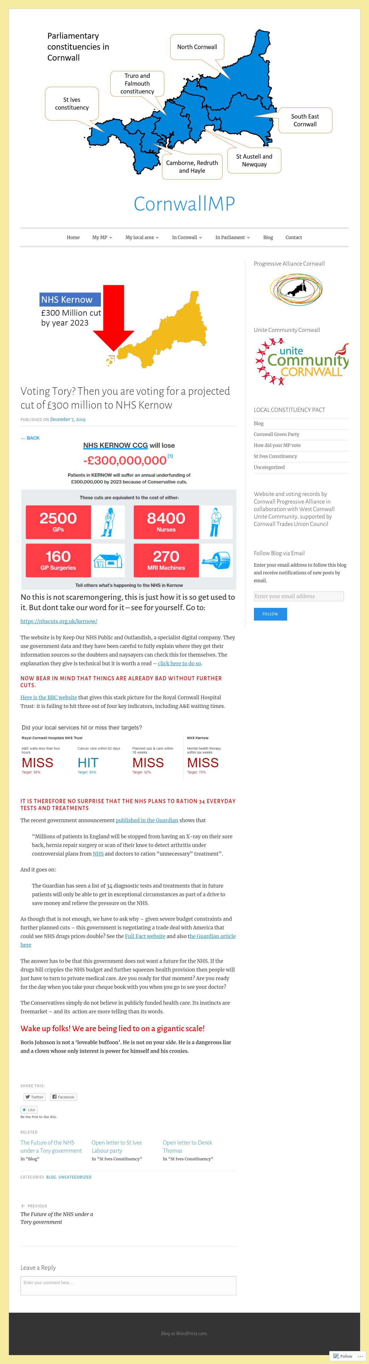 Title:Voting Tory? Then you are voting for a projected cut of £300 million to NHS Kernow – CornwallMP