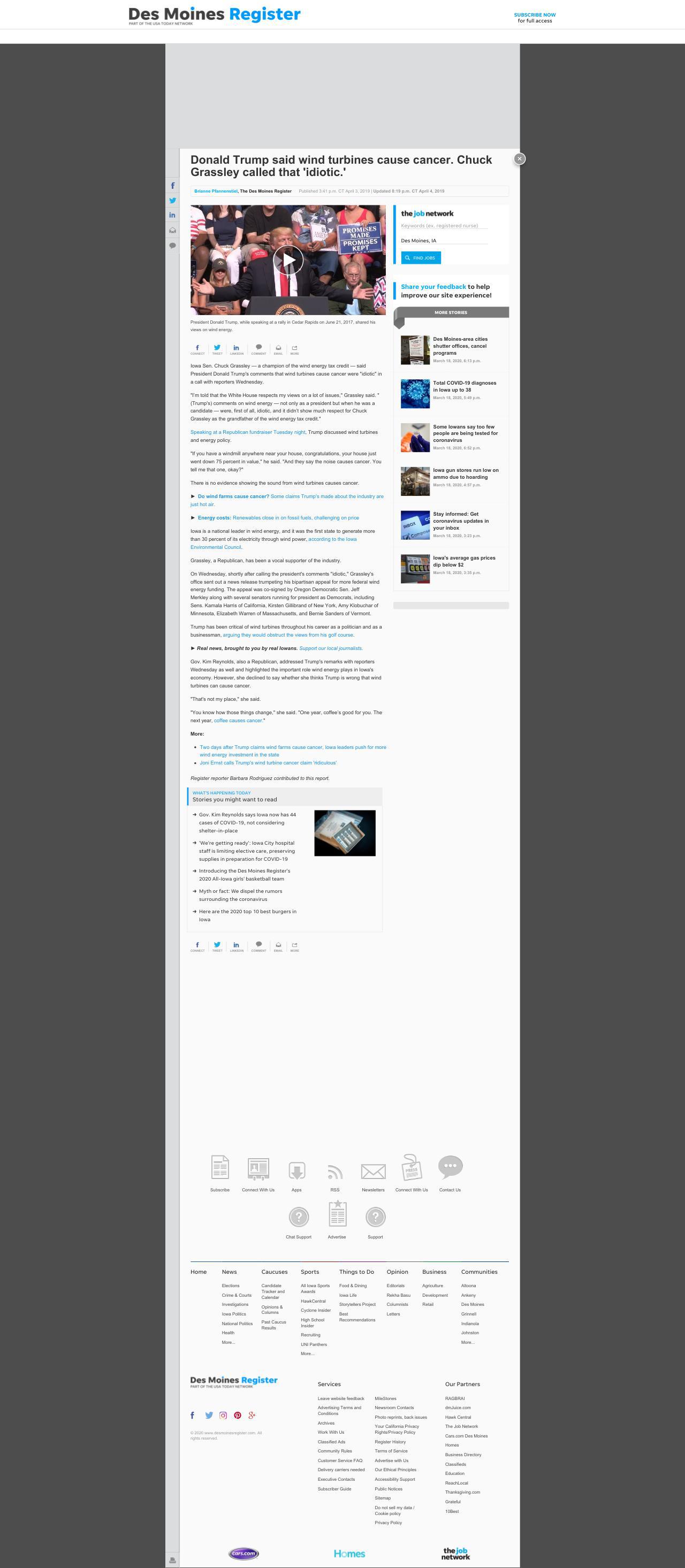 Title:Brianne PfannenstielDonald Trump said wind turbines cause cancer. Chuck Grassley called that 'idiotic'.