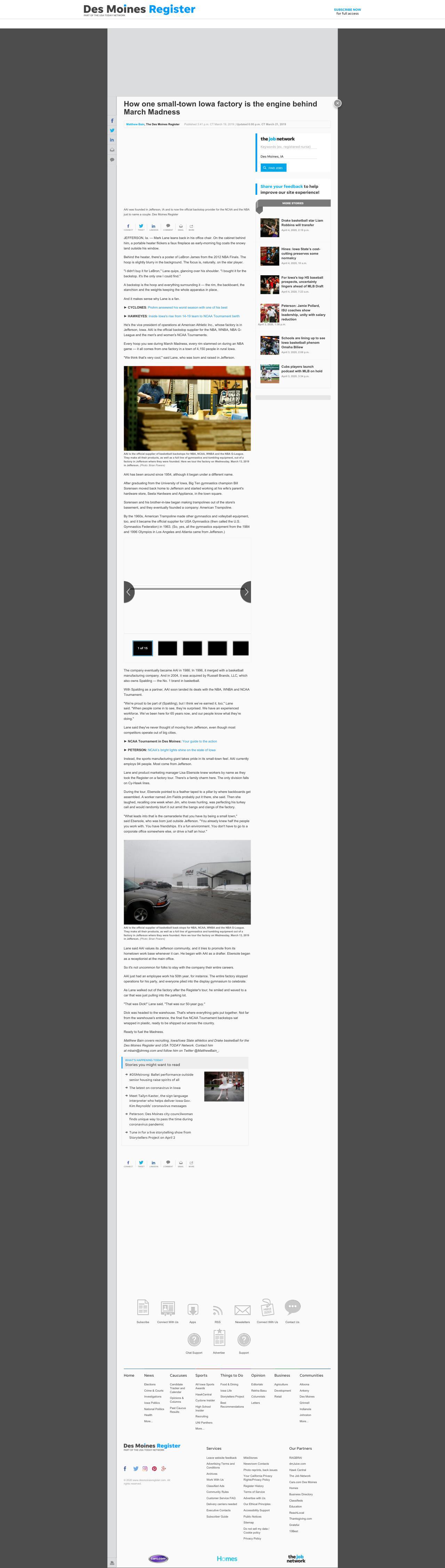 Title:Matthew BainIowa factory is the engine behind March Madness, NBA, WNBA and the NCAA Tournament