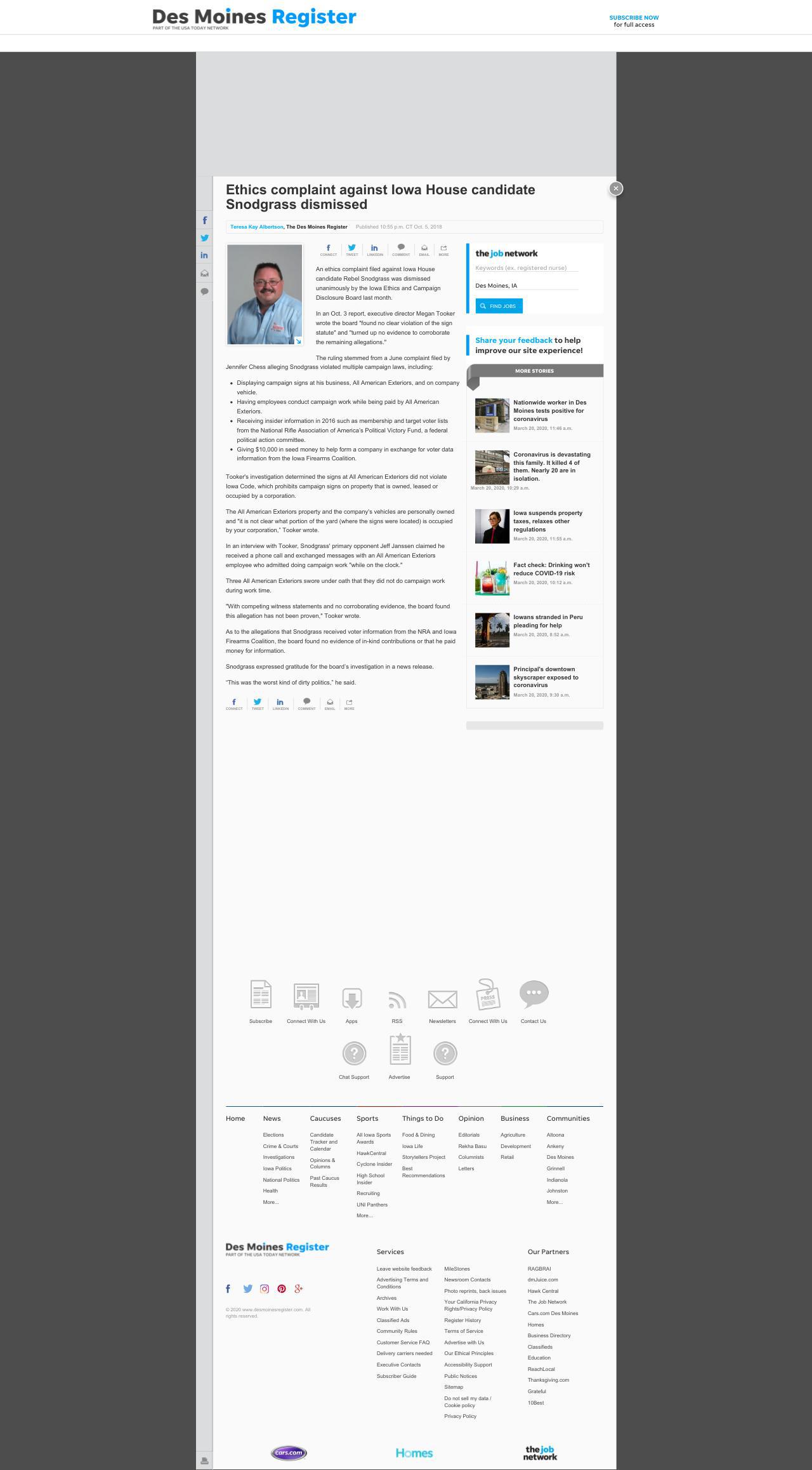 Title:Teresa Kay AlbertsonEthics complaint against Iowa House candidate Rebel Snodgrass dismissed