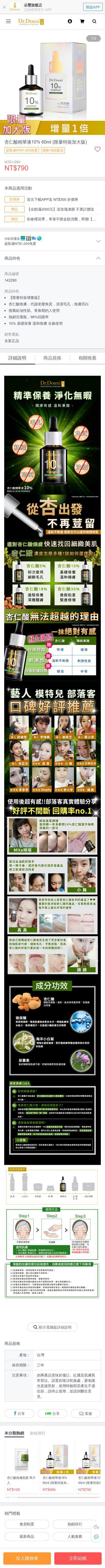 Description:限量特裝增量加大版!口碑冠軍NO.1,杏仁酸的冠軍霸主!銷售百萬瓶佳績,杏仁酸溫和居家煥膚,掃除老廢角質,毛孔收斂,煥膚亮白。回購率98%。│杏仁酸10%,基礎保養‧溫和煥膚‧全臉使用。