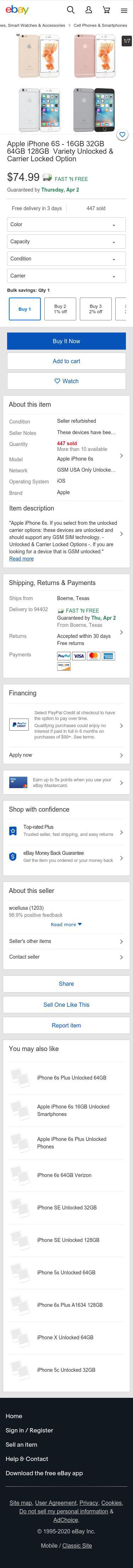 Title:Apple iPhone 6S - 16GB 32GB 64GB 128GB Variety Unlocked & Carrier Locked Option | eBay