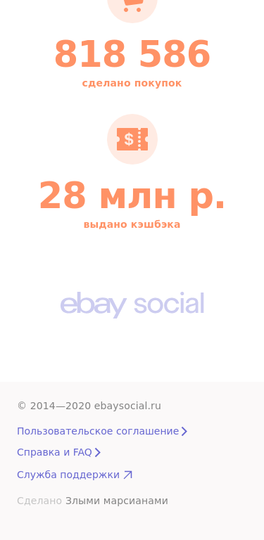 Description:Кэшбэк от 1,5% до 50% с покупок, купоны eBay и партнеров в одном месте.