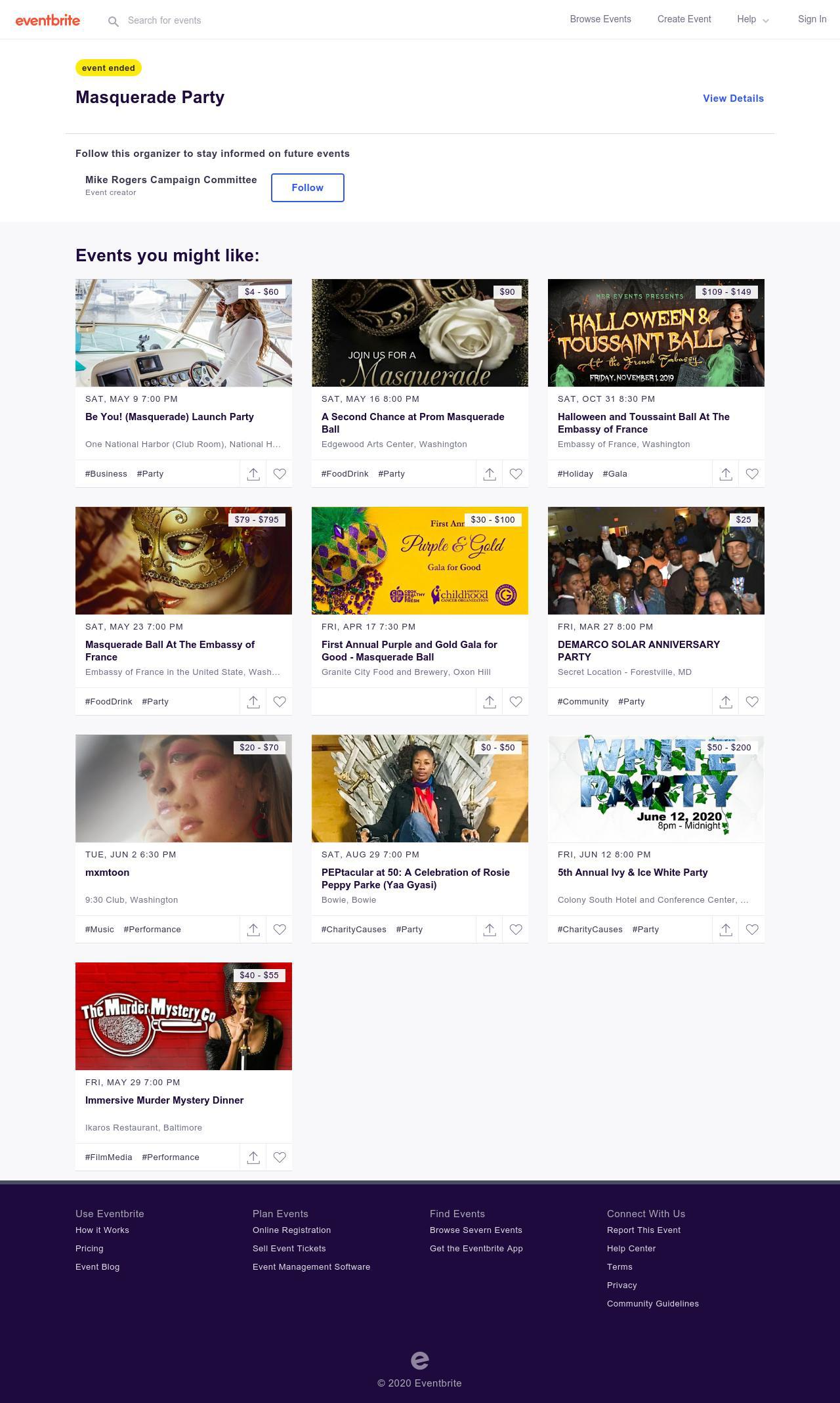 Description:Eventbrite - Mike Rogers Campaign Committee presents Masquerade Party - Saturday, October 6, 2018 | Sunday, October 7, 2018 at American Legion Post 276, Severn, MD. Find event and ticket information.