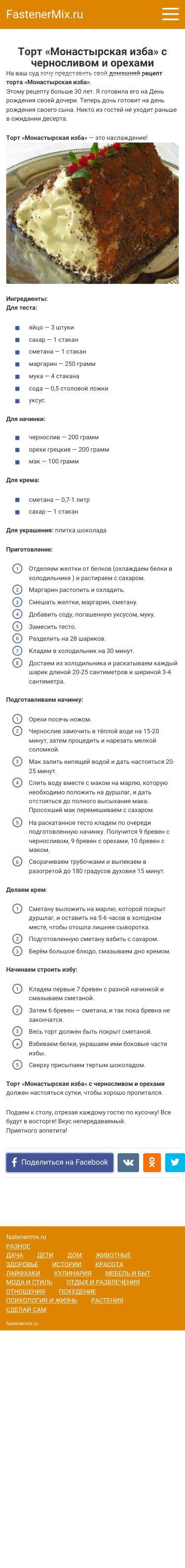 Title:Торт «Монастырская изба» с черносливом и орехами