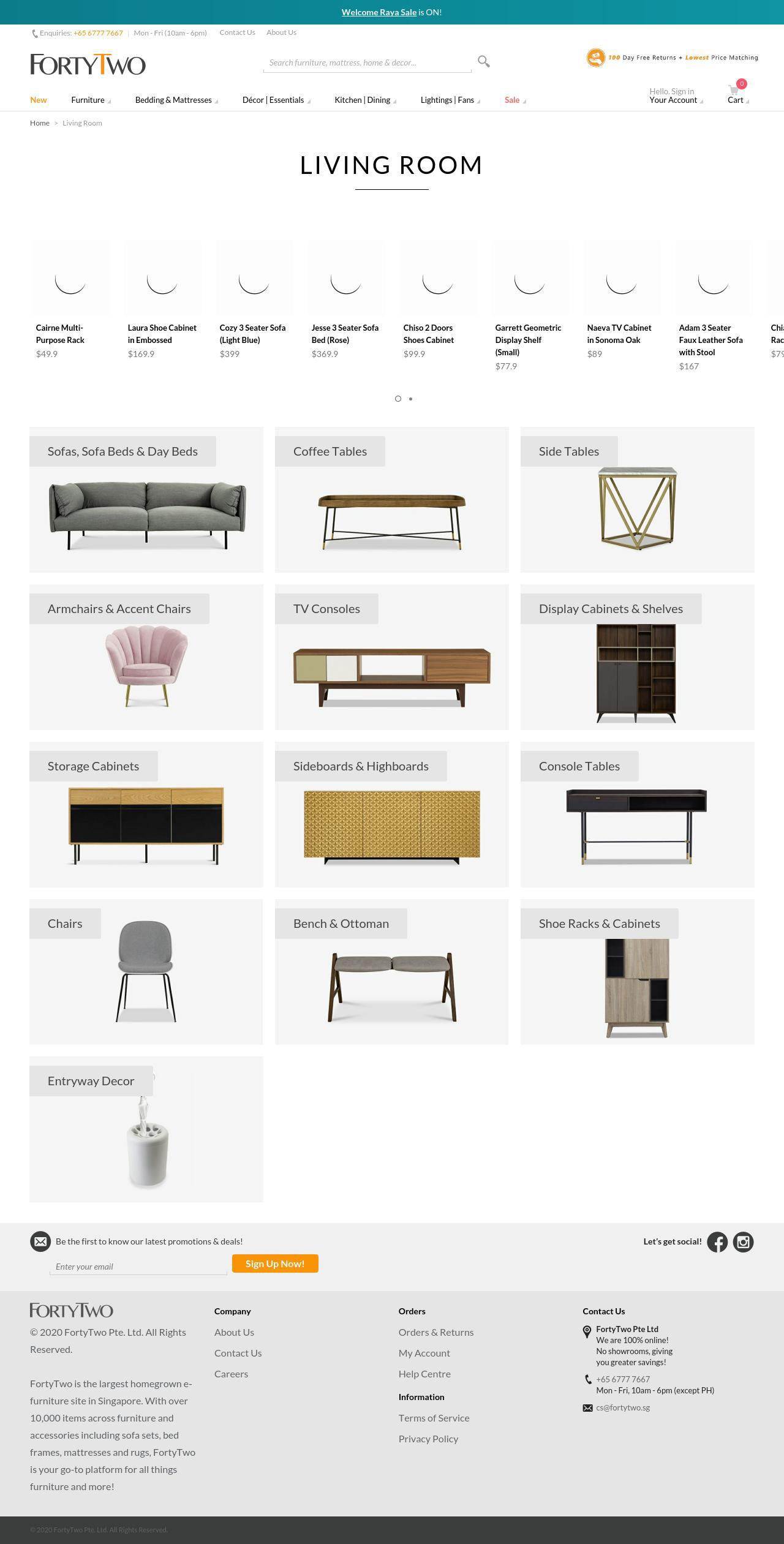 | Description | FortyTwo.sg (formerly Beds.sg) is an online home furnishing and lifestyle shopping site in Singapore. Our product sale includes Home Furniture, Mattress, Home Appliances and Office Furniture in Singapore. | N/A | N/A |