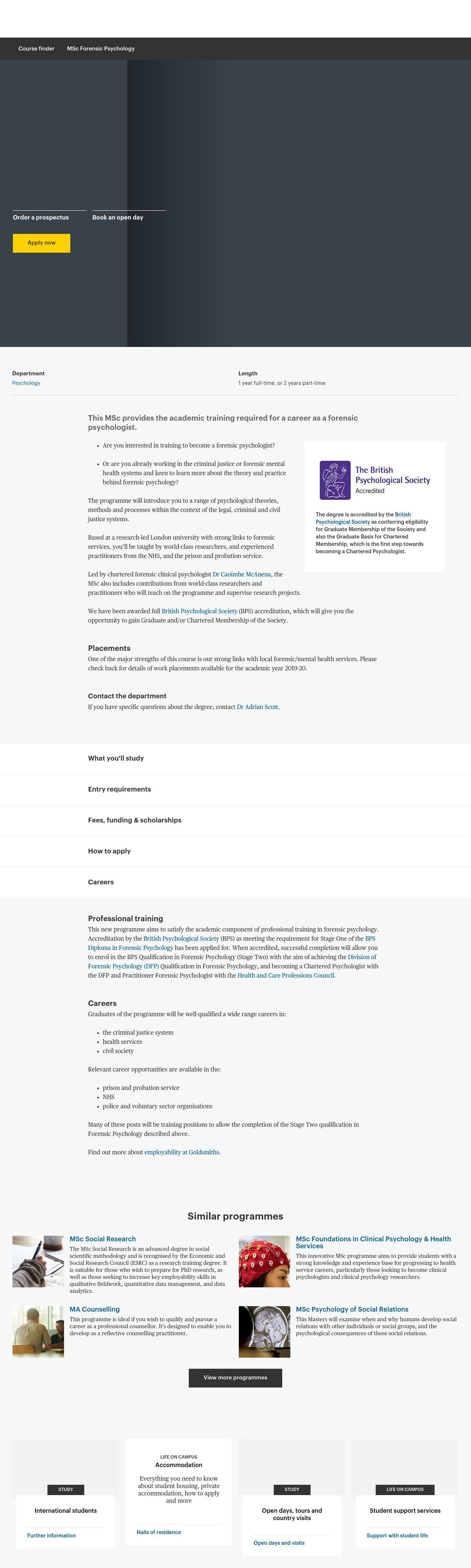 Description:Interested in how to become a forensic psychologist? The MSc Forensic Psychology at Goldsmiths is a British Psychological Society accredited masters degree.