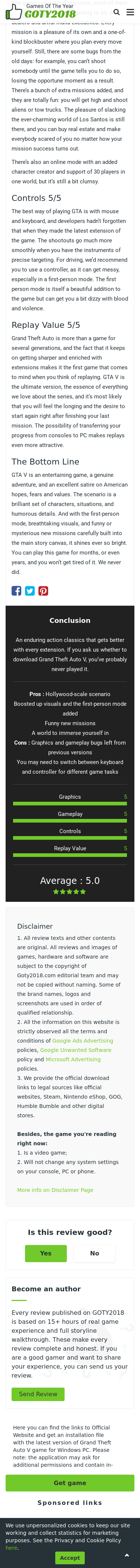 Title:Game 🮠Grand Theft Auto V for Windows PC. Prices, Reviews, Rating at goty2018.com