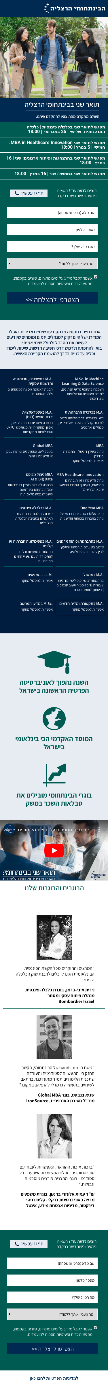 Description:תואר שני בבינתחומי הרצליה העולם מתקדם מהר. בואו להתקדם איתנו. רוצים לדעת עוד? השאירו פרטים וניצור קשר בהקדם מפגש לתואר שני בכלכלה פיננסית | כלכלה התנהגותית: שלישי | 25 בפברואר | 18:00 מפגש לתואר שני ב- MBA in Healthcare Innovation: חמישי | 5 במרץ | 18:00