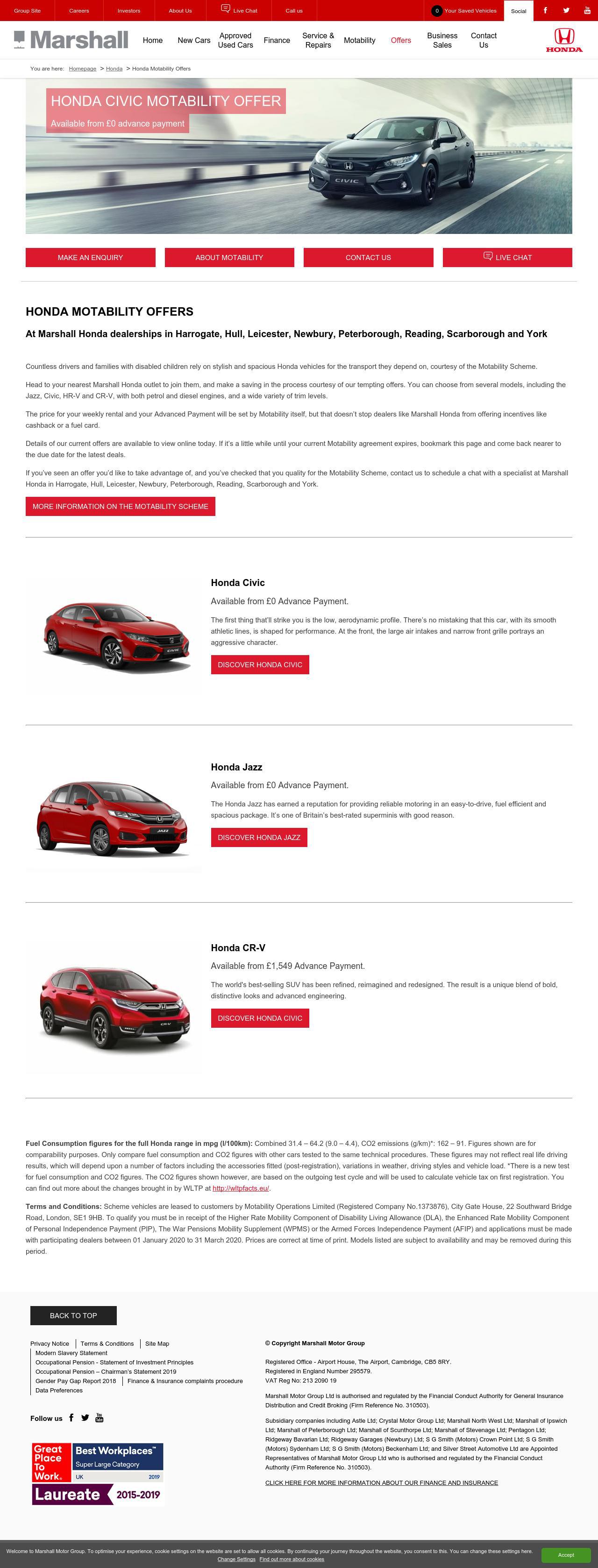 Description:Find out more about our motability offers available at Marshall Motor Group Honda in the UK.