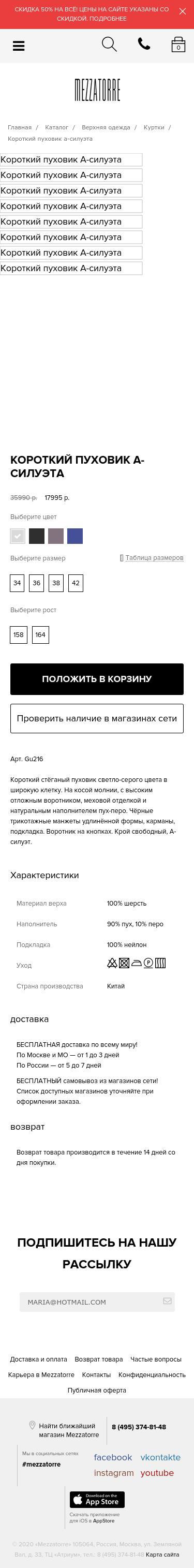 - В нашем интернет-магазине предлагаем купить: пуховик с отложным воротником Gu186 по выгодной цене: 26 593 р. Mezzatorre – итальянская компания модной женской одежды.