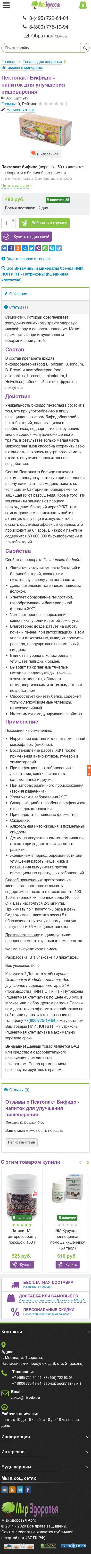 Title:Пектолакт Бифидо. Напиток с бифидобактериями и лактобактериями для нормализации функции ЖКТ