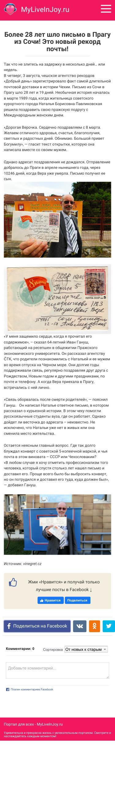 Title:Более 28 лет шло письмо в Прагу из Сочи! Это новый рекорд почты!