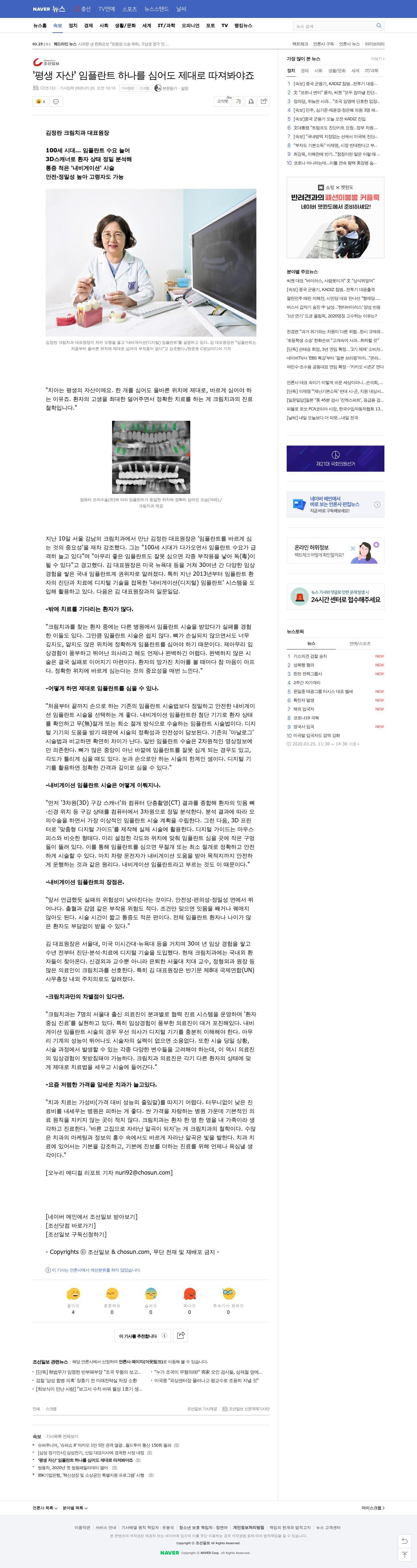 Title:조선일보 | 네이버'평생 자산' 임플란트 하나를 심어도 제대로 따져봐야죠 : 네이버 뉴스
