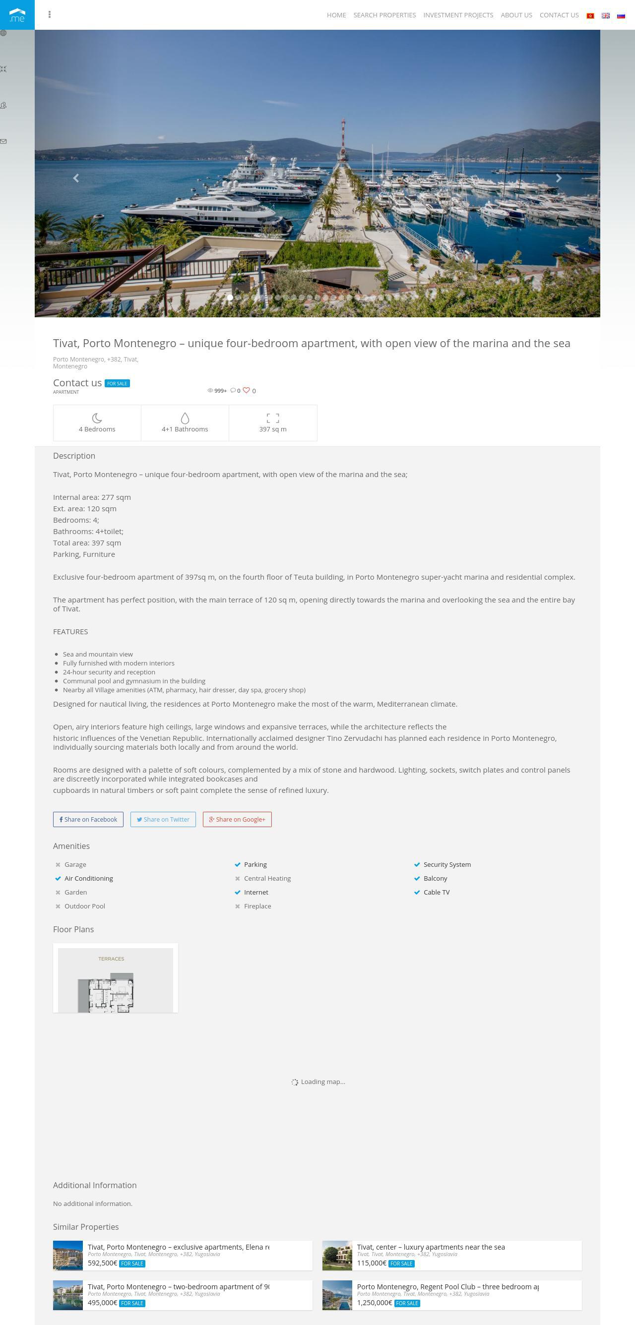 - Tivat, Porto Montenegro – unique four-bedroom apartment, with open view of the marina and the sea