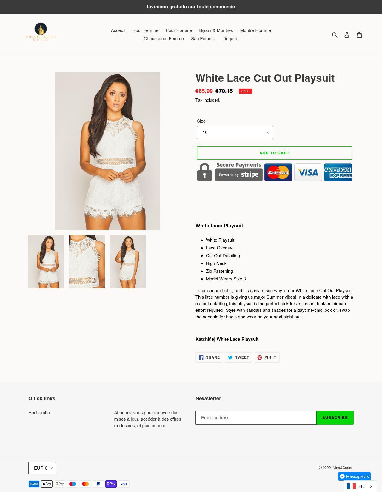 In fact, I prefer the title “Femmes Sexy sans manches dos nu Bandage Bodycon – Nina&Carter” better than “White Lace Cut Out Playsuit – Nina&Carter”.