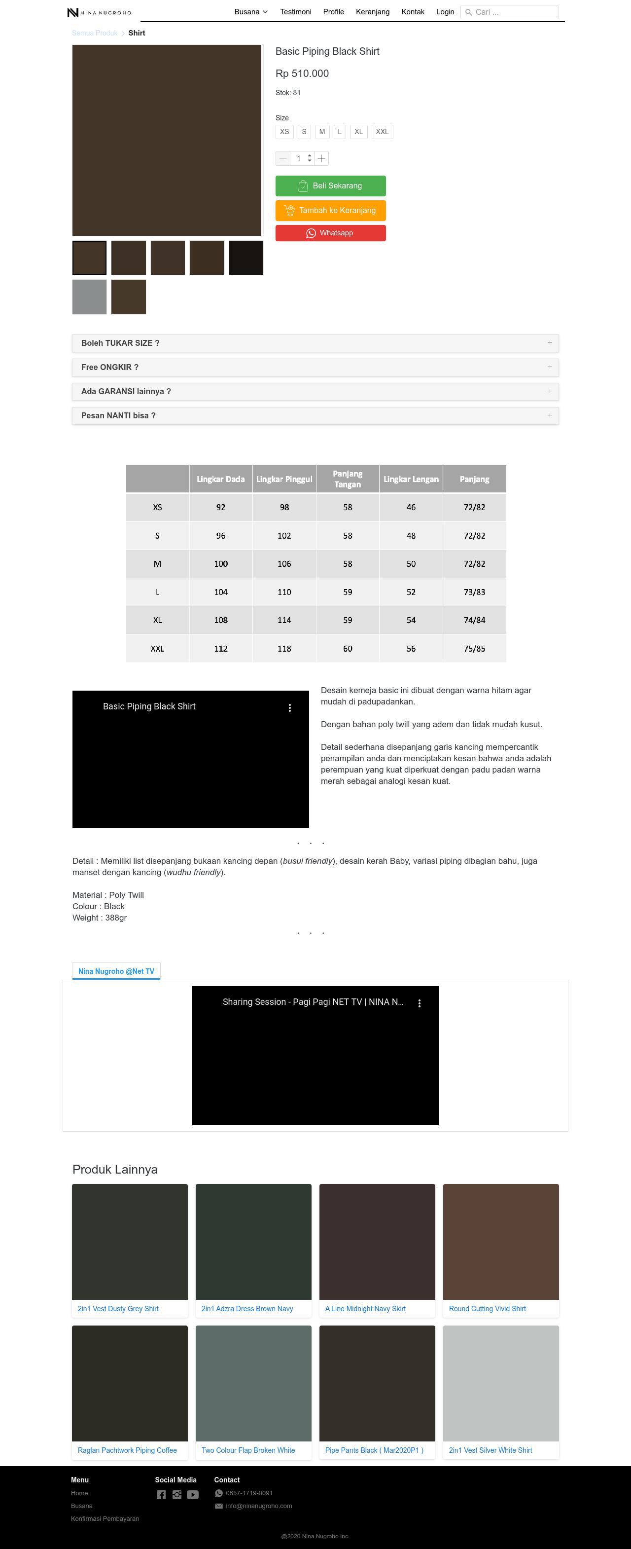 | Description | . . Dress ini di desain dengan konsep 2in1 yaitu seperti dua buah baju basic dan luaran gamis dipadupadankan, padahal sesungguhnya hanya satu baju saja. . Konsep 2in1 adalah konsep unggulan dari Nina Nugroho. Perpaduan warna brown dan | . . Desain kemeja basic ini dibuat dengan warna hitam agar mudah di padupadankan. . Dengan bahan poly twill yang adem dan tidak mudah kusut. . Detail sederhana disepanjang garis kancing mempercantik penampilan anda dan menciptakan kesan | . . Desain 2in1 ini merupakan solusi bagi anda yang ingin tampil profesional tapi tidak mau memakai busana dobel. Sangat cocok untuk di pakai acara formil dalam pekerjaan. . Variasi piping disepanjang bukaan kancing depan dan tali yang |