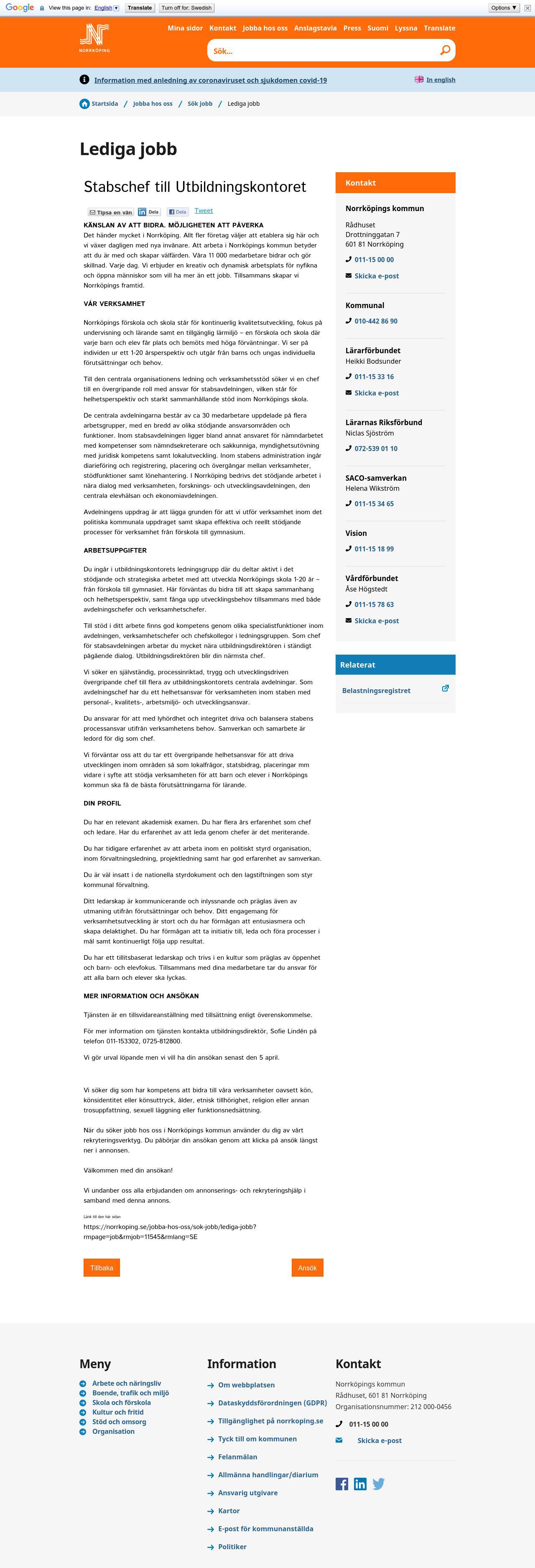 | Description | Här hittar du aktuella jobbannonser i Norrköpings kommun. | N/A | N/A |