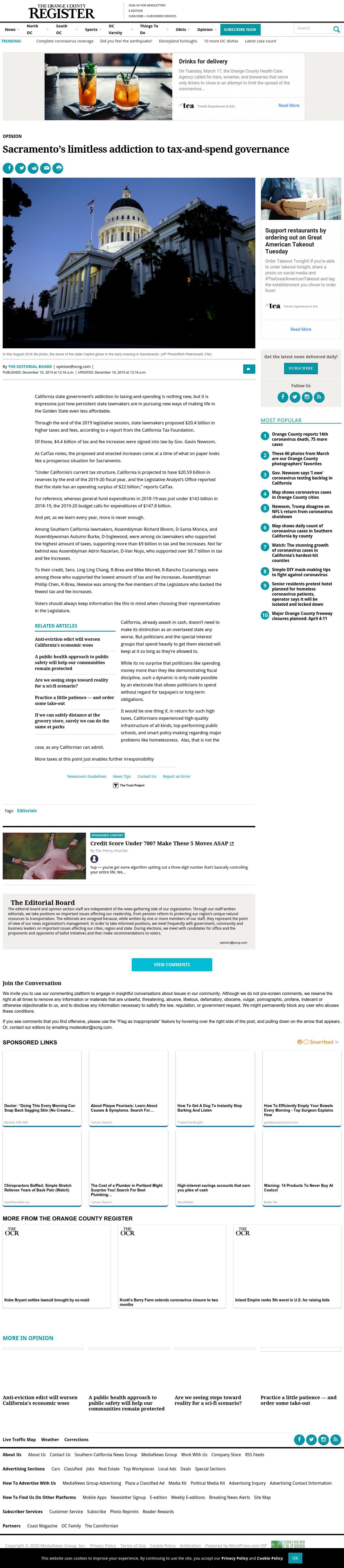 Title:Sacramento’s limitless addiction to tax-and-spend governance – Orange County Register