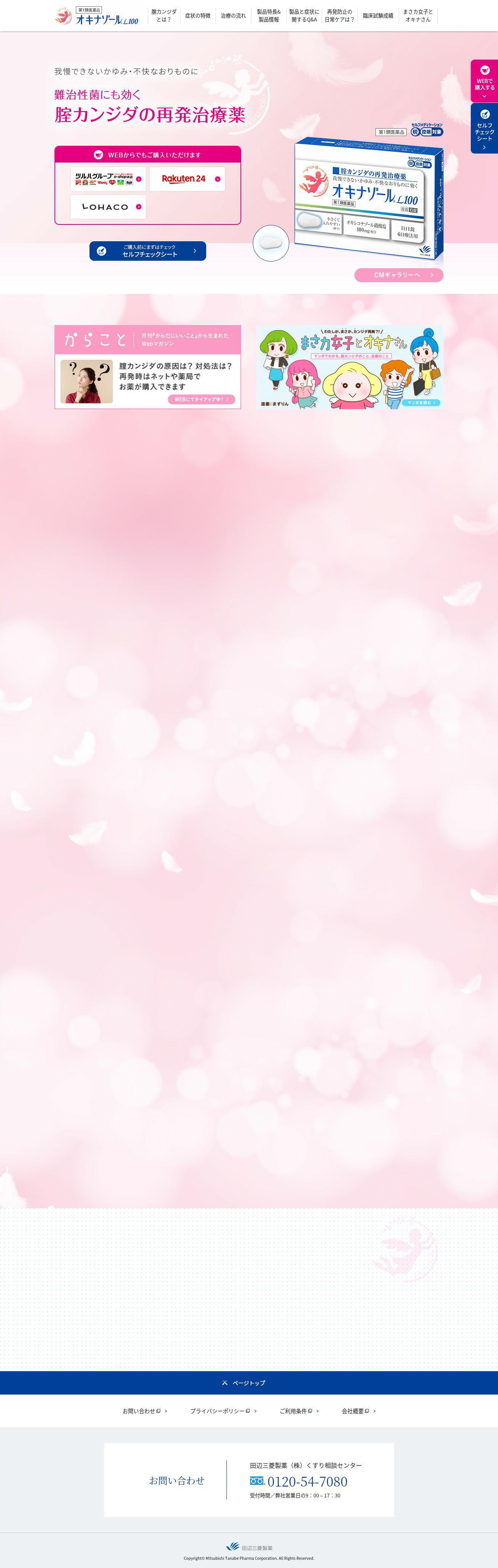 In fact, I prefer the title “オキナさん、腟カンジダとお薬のこと教えて!|オキナゾール®L100|田辺三菱製薬” better than “【オキナゾール®L100】腟カンジダの再発治療薬|田辺三菱製薬”.