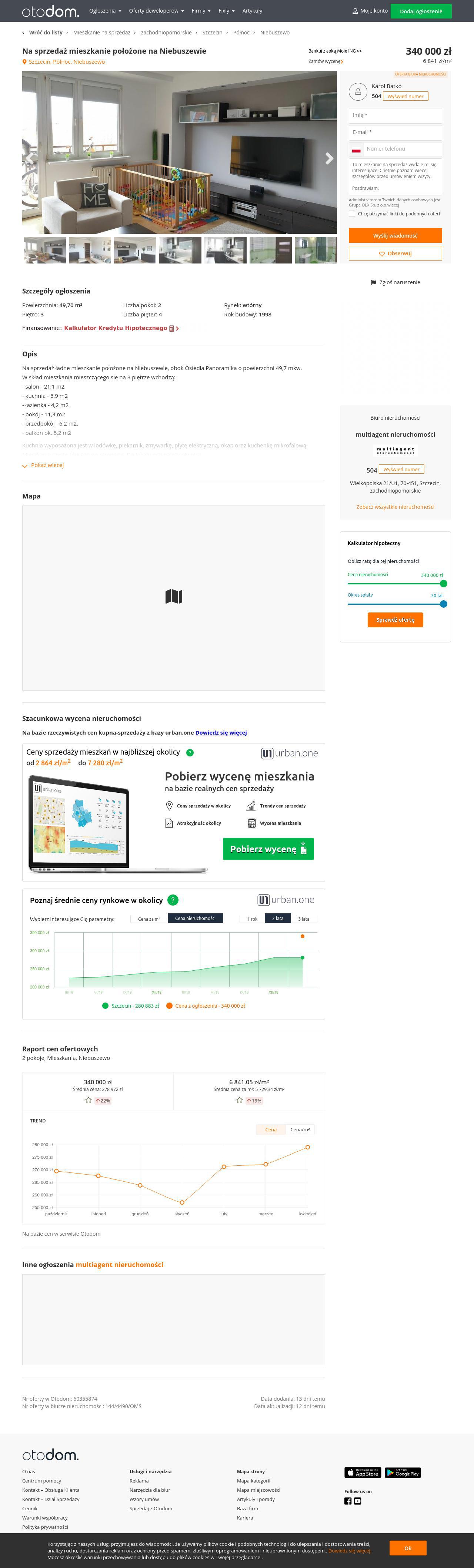 - Świetne 2 pokojowe mieszkanie na sprzedaż w miejscowości Szczecin, Północ, Niebuszewo, za cenę 340 000 zł. To mieszkanie na sprzedaż na 3 piętrze ma 49,70 m² powierzchni użytkowej i 49,70 m² powierzchni całkowitej. Otodom 60355874