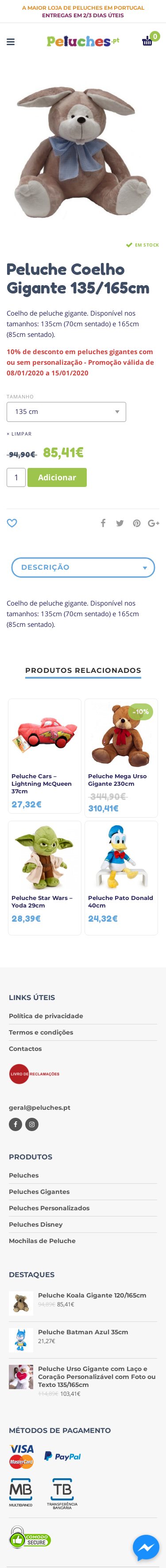 Title:Peluche Coelho Gigante 135/165cm - Peluches.pt