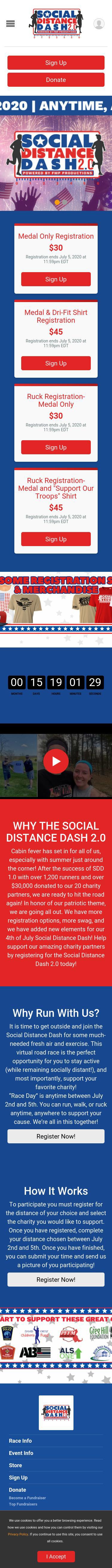 Description:The Social Distance Dash 2.0 is on Thursday July 2, 2020 to Sunday July 5, 2020. It includes the following events: Medal Only Registration, Medal & Dri-Fit Shirt Registration, Ruck Registration- Medal Only, and Ruck Registration- Medal and "Support Our Tr
