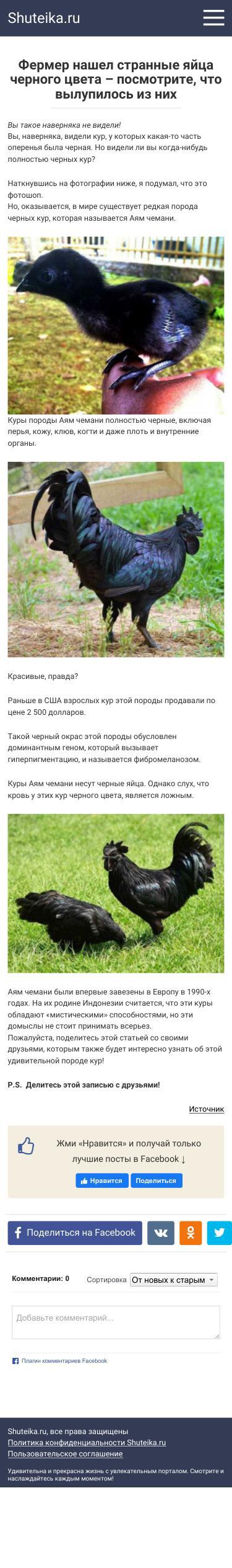 Description:Вы, наверняка, видели кур, у которых какая-то часть оперенья была черная. Но видели ли вы когда-нибудь полностью черных кур?