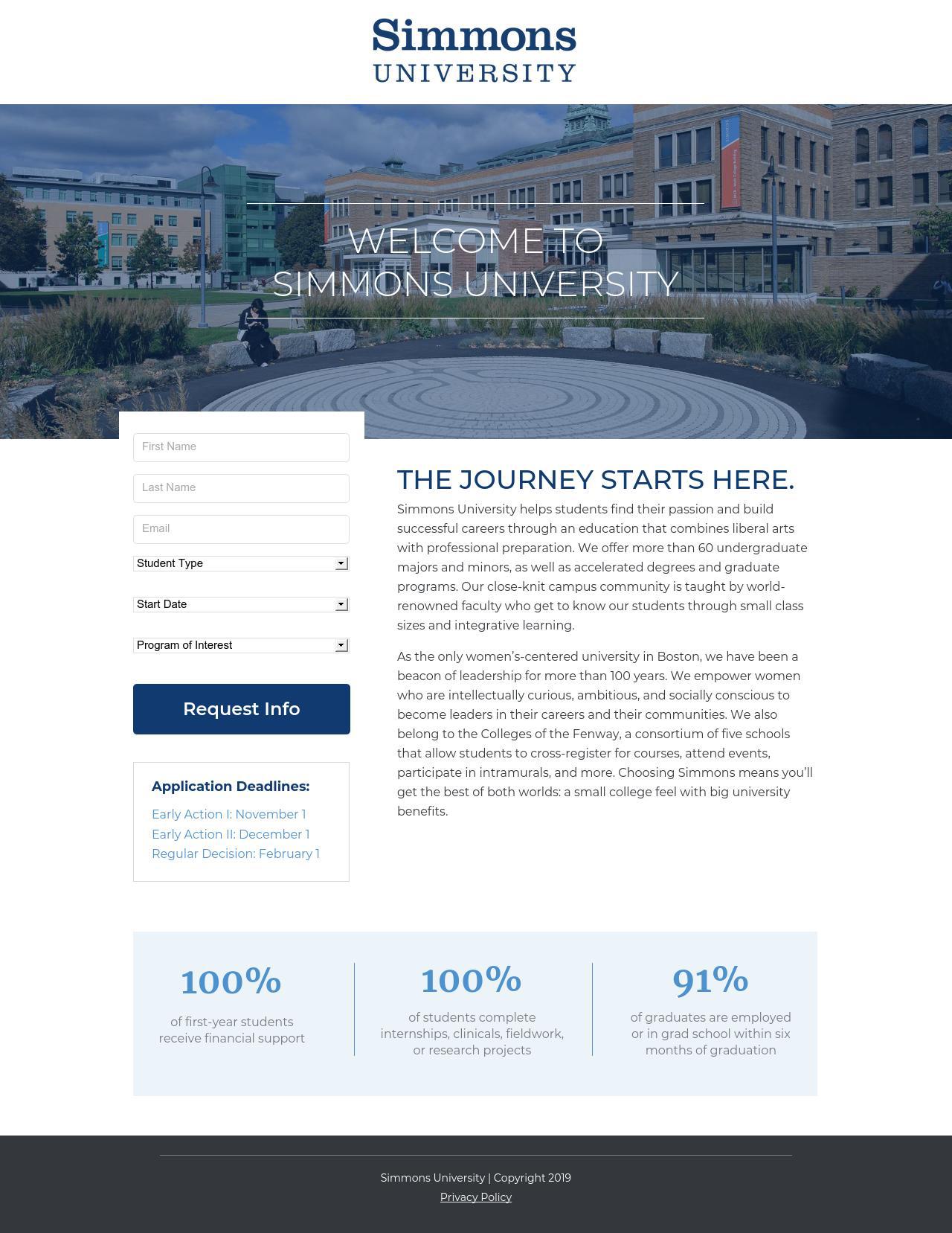 Fortunately, LandingSpy can help you successfully solve the problems above. LandingSpy is the best landing page software. It tracks the simmons.edu ads, and analyzes the landing page data of the ads. Its landing page link is simmons.edu.