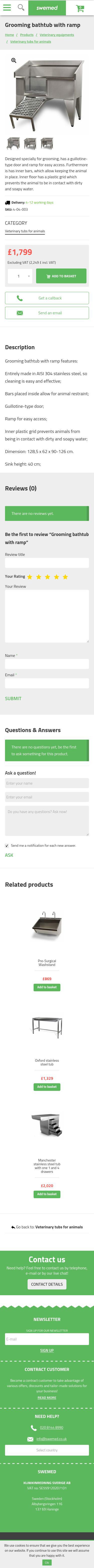 | Description | Height Adjustment Electric system Mechanism Side rails Type Technical Frame Twin pillar Grey Width 50 cm Length From 185 to 198 cm Height 46/98 cm Recommended Maximum Weight 250 Kg Foam Thickness 5 cm Foam Firmness III – Medium Firm Head / Backrest Hydr | Examination lamp | Designed specially for grooming, has a guillotine-type door and ramp for easy access. Furthermore is has inner bars, which allow keeping the animal in place. Inner floor has a plastic grid which prevents the animal to be in contact with dirty and soapy wa |