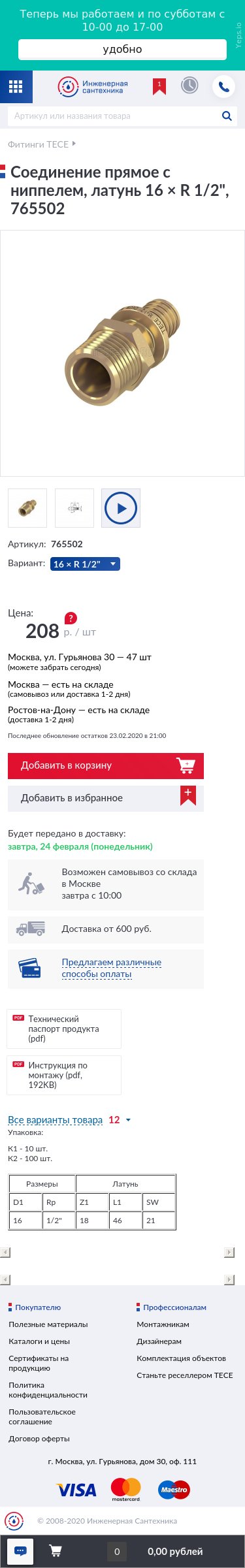 Description:Соединение прямое с ниппелем, латунь 16 × R 1/2" от официального дилера, артикул 765502