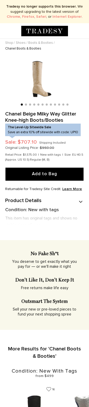 Title:Chanel Beige Milky Way Glitter Knee-high Boots/Booties Size EU 40.5 (Approx. US 10.5) Regular (M, B) - Tradesy