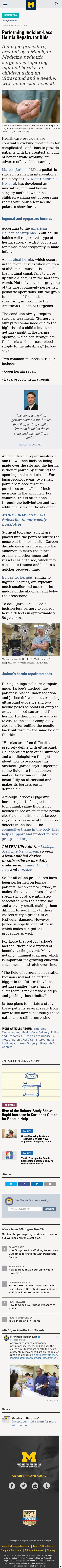 Description:New incision-less hernia repair avoids adverse effects, like scarring, in kids.