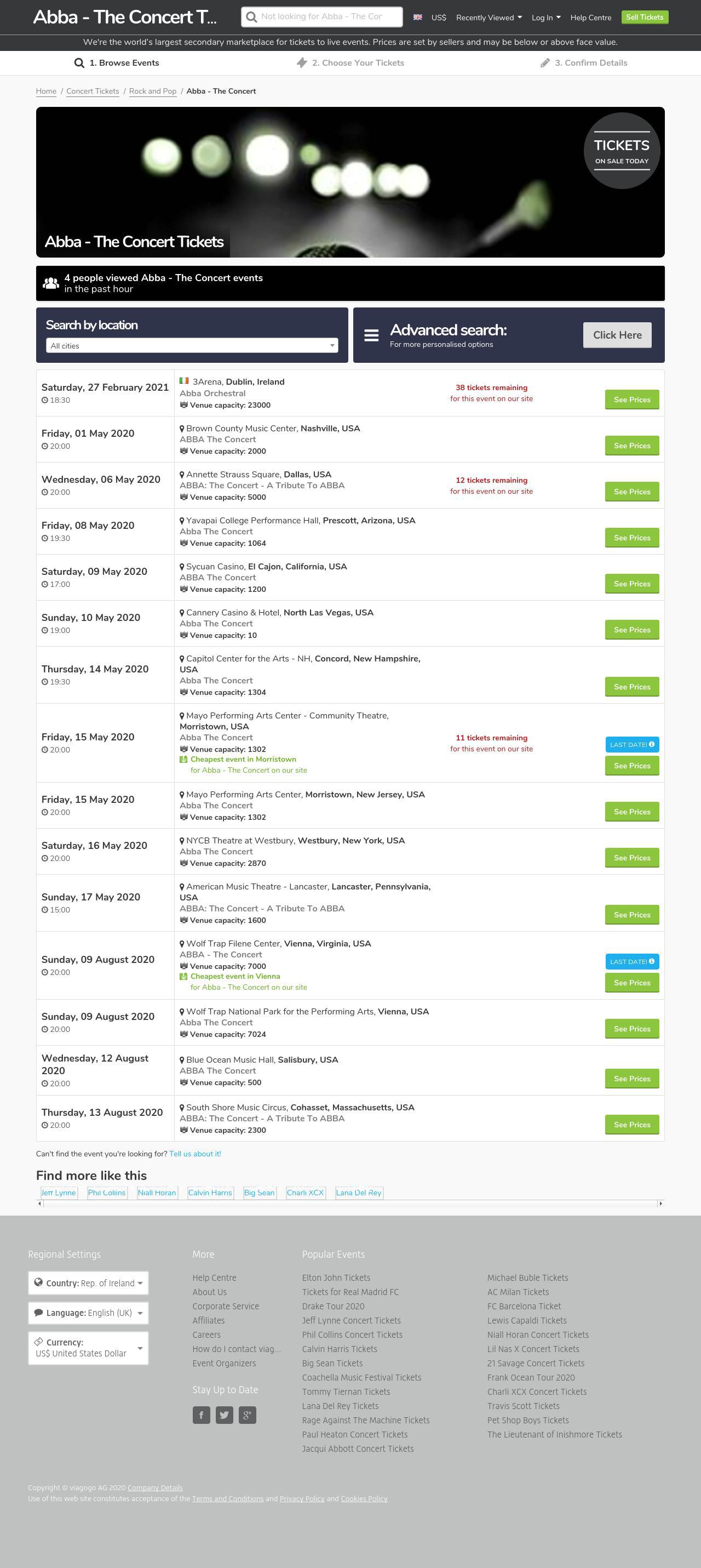 Description:Abba - The Concert tickets now available from $35.99 as of 07 Mar 2020 - viagogo, world's largest ticket marketplace.
