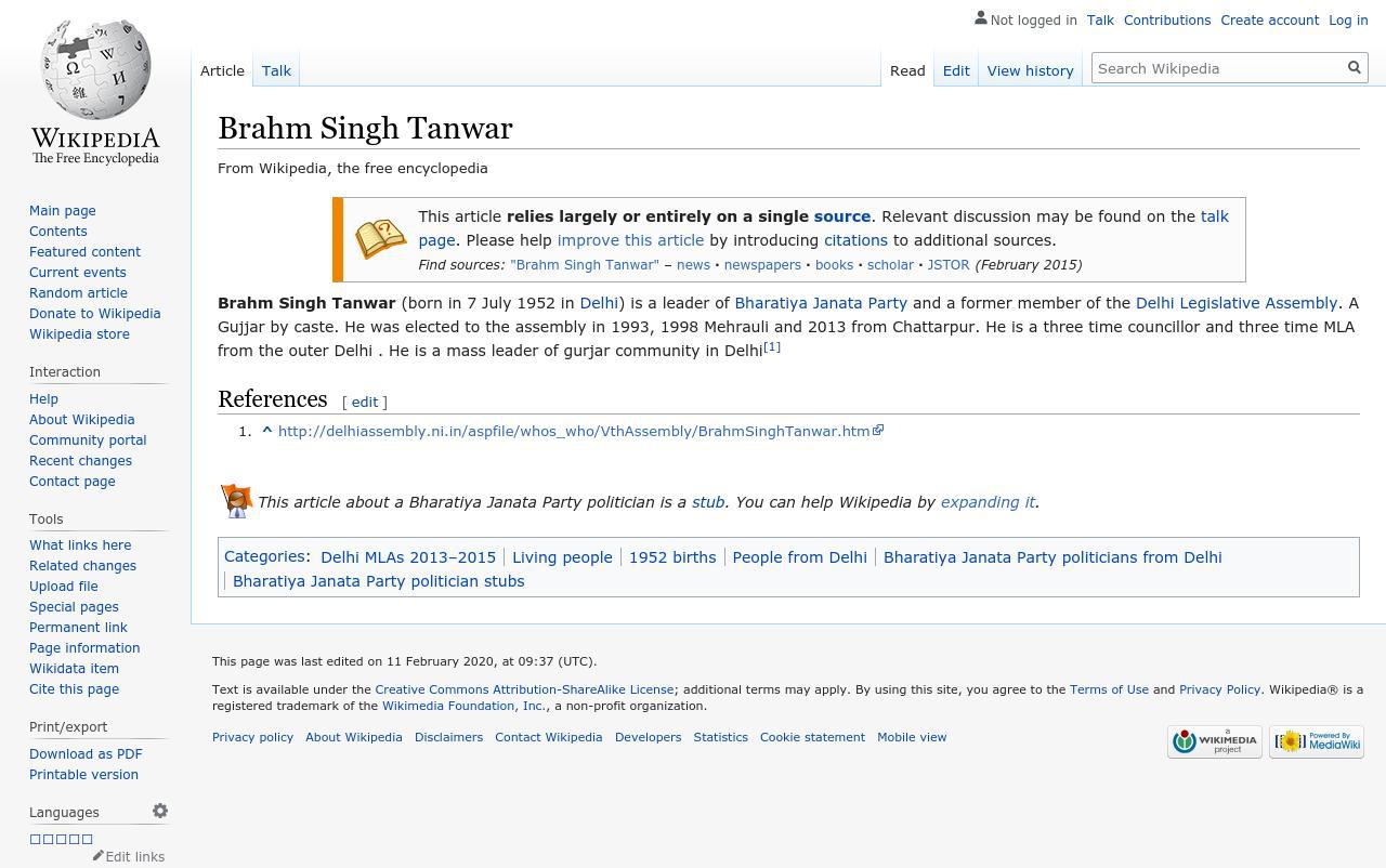 Title:Brahm Singh Tanwar - Wikipedia